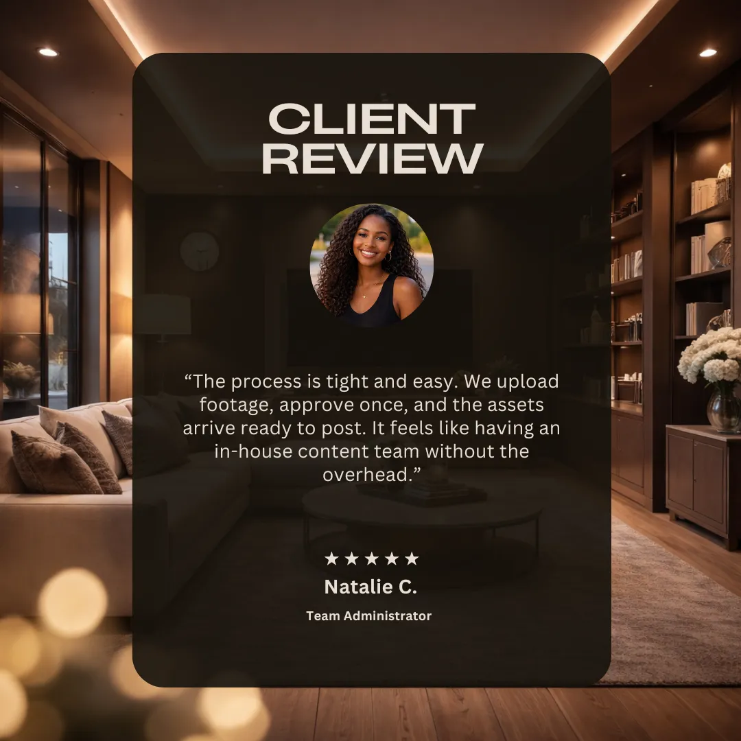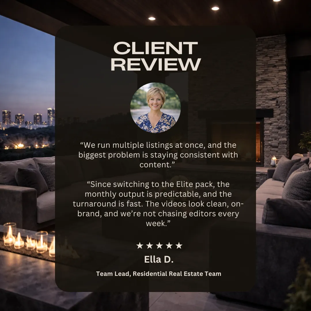 It makes your content look polished and consistent, saves time, and helps viewers quickly understand the home’s best features. It also helps you build your brand and get known more locally.